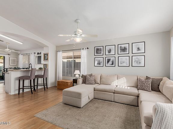 Welcome to this beautifully maintained and centrally located residence, featuring the most sought-after modern upgrades and an unbeatable location just half a mile from the US 60 for effortless commuting. This charming 3-bedroom, 2-bathroom home offers an appealing open-concept floor plan centered around a cozy great room, perfect for entertaining and everyday living. Enjoy stylish, neutral paint tones and updated flooring throughout, providing a fresh, move-in-ready palette. The heart of this home features gleaming granite countertops, crisp white cabinetry, and a suite of stainless steel appliances. This property boasts a well-kept yard with mature, maintained grass in both the front and back for optimal curb appeal and enjoyment. Situated directly across the street from a lush community park equipped with a playground and basketball court- perfect for leisure and recreation.