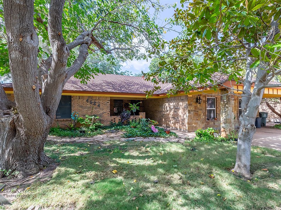 Beautiful brick fireplaceSpacious backyardStone paver pathLarge primary bedroomEn-suite bathroomLarge mature treesAmple closet space