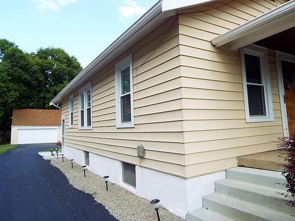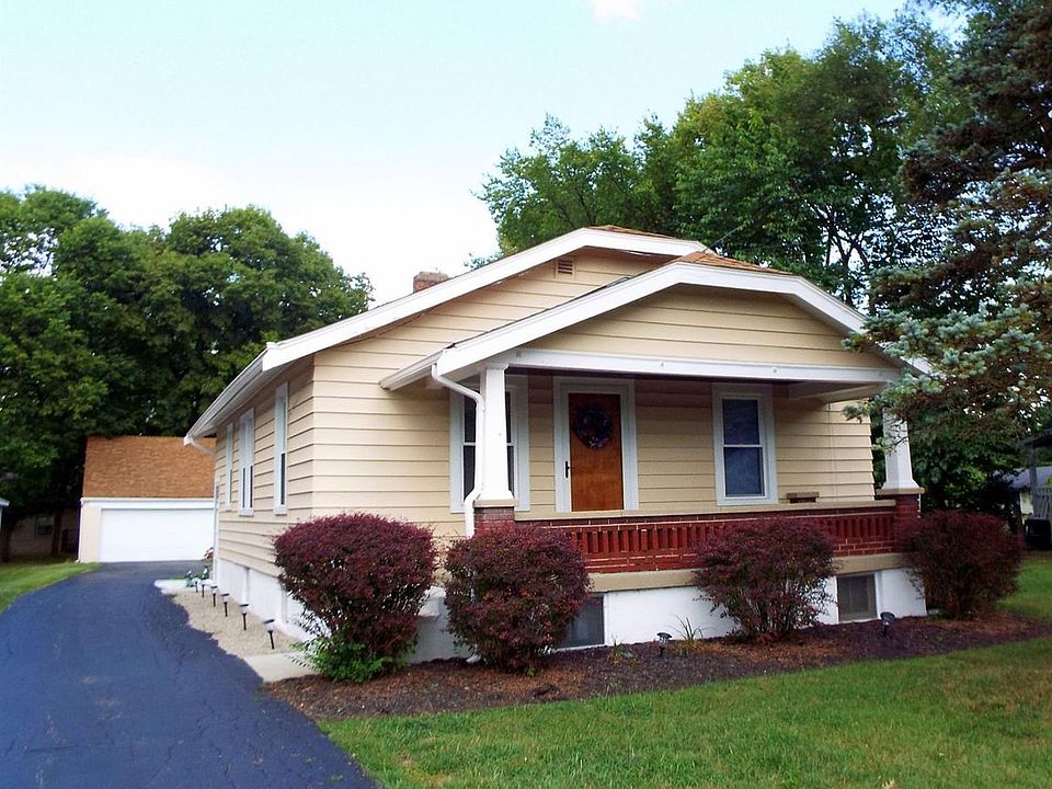 Cute As A Button! 2 bedroom, 1 bath ranch home w/finished lower level family room. Equipped kitchen. Over-sized 2 garage w/work-shop room & 2nd level storage. Covered front & back porch. Plenty of storage in the basement. 2019-HWH, 2017-Windows, 2017-Exterior Painted, 2012-Roof. Newer Front & Back Storm Doors. Convenient location. Sold-As-Is