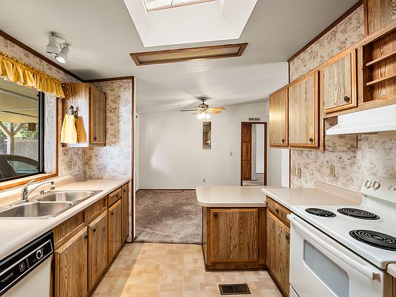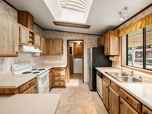 PRICED TO SELL AT GREAT PRICE! Move-In Ready Home in 55+ Rogue Valley Mobile South Park. 3-bedroom, 2-bathroom home w/ comfort, convenience, & charm all in great location! Bright & inviting living room w/ large picture window that fills space w/ light. Kitchen w/ lots of counter space & cabinetry & skylight. Primary suite w/ double closets, private bath w/ walk-in shower & skylight. Two additional generously sized bedrooms & full guest bath w/ tub/shower provide plenty of room for family or guests. Enjoy the convenience of a laundry room w/ built-in cabinetry & access to covered carport that's perfect for unloading groceries w/ ease. Outside, the fenced yard includes raised garden bed, ideal for growing your own veggies, or flowers. Minutes from restaurants, shopping, Golf Course, & Asante Rogue Medical Center. Enjoy the pool table, full kitchen & seasonal pool. *Space rent includes water, sewer, trash, common area.