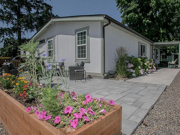 Charming home in Rogue Valley South (55+ park) that has been beautifully updated over the past few years! Recent updates include: 2021—Luxury vinyl flooring, serene interior paint, remodeled kitchen with pull-outs & coffee bar, new refrigerator/washer/dryer (included); remodeled bathrooms with walk-in showers); new heat pump. 2022—Fresh exterior trim paint. 2023—New vinyl double pane windows. 2024—Added back patio. 2025—Added two raised garden beds (10'x20'') & elevated garden bed. Bay windows brighten the spacious living & dining areas. Primary suite offers double closets & appealing backyard views. Sweet easy-care backyard with patio & planters. North-side covered front porch nestled in with lovely hydrangeas on drip system, solar lights from street to front patio. Front yard also on timed drip system. Some furniture can be included with sale. 1-year home warranty offered.