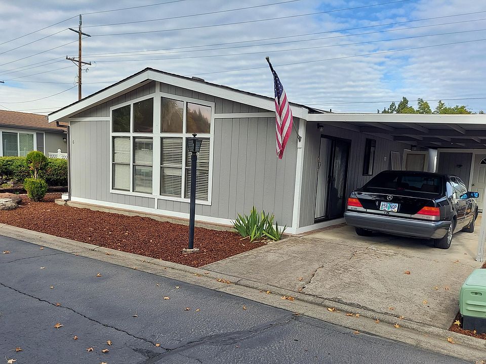 Rogue Valley South 55+ community. 1539 sq.ft. 2 bedroom 2 bath w/open office Here's an opportunity to purchase in this park at a good price! Property includes expansive rear deck, and large storage shed behind carport. Space rent includes water, garbage, and sewer and access to the pool and clubhouse.