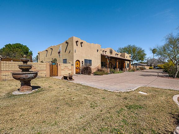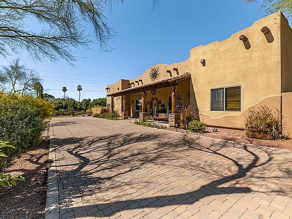 Wow, just wow! This incredible 5 bed, 2 full bath + 2 half bath, corner lot compound w/ mature landscape on 1.5 acres of land, including irrigation, animal rights, and backs to a bridle path, is what you've been searching for! This beauty offers a spacious 3-car garage w/epoxy floors, covered RV gate parking w/50 amp, clean-outs, slab parking for all of your toys, and a pull-through driveway w/ pavestone & aggregate aprons. The interior showcases a traditional split floor plan w/ solid wood distressed hickory flooring, decorative log poles, recessed lighting, exposed beams, windows in all the right places, & multiple fireplaces! The sellers meticulously built this home and have cared for it since. The stunning kitchen boasts knotted hickory cabinets, Lithuanian granite counters, a large pantry, Samsung smart fridge plus dishwasher, work station, breakfast bar, a stunning copper sink and stove. A one of a kind entertaining space! The main bedroom features a large sitting area with a remote propane heatilator fireplace, private yard with hot tub, an ensuite w/slipper tub & travertine shower, his/hers sinks, and a walk-in closet w/built-ins. Off the main bedroom you'll find a bonus room w/a private entrance and bathroom ideal for an office, nursery or studio. Cat 5 & Coaxial to all rooms & 2 zone AC. Laundry w/utility sink & front load washer/dryer. Outstanding backyard is an entertainer's dream! Covered pavilion BBQ, outdoor shower, sparkling raised edge saline pool, solar heating, swim-up bar, waterfall w/grotto seating & slide. Covered patio w/gaming area & fountain, spiral staircase to observation deck, & a gorgeous beehive fireplace complete the picture of this Desert Oasis! 8 ft. block fence w/chain link, automated drip system, surround sound, 5G wifi, security cameras & alarm system, fire sprinklers, nest thermostats, high-pressure commercial misting system & fans. 2200 SQFT shops one w/garage door & one open. 100 AMP service w/220 plug-in, all slabbed, large rolling entry gate. R-75 insulation foam/batt. All of this in a family oriented neighborhood with community events throughout the year. This gem won't last long! Schedule a tour today!