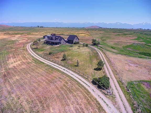 Gorgeous, custom-home on 40 acres that celebrates the special privacy of open landscapes. This stunning residence features 360-degree views of the towering Mission Mountains, the foothills of the Flathead River, and the quiet rural character of the Round Butte area. Classically designed 4000+ SF home with high-quality renovations including a spectacular kitchen with walnut cabinets, sleek quartz countertops and the most amazing kitchen-sink view! Towering ceilings, log accents and maple floors showcase the propane fireplace and hand-carved European chandelier. Wood-clad windows flood the home with natural light and create a seamless connection to the covered patios and fenced yard. The main-floor master features a spa-like ensuite with steam shower, dual vanities & heated floors. Charming guest quarters sits above the double car garage while an oversized shop and irrigable acreage create countless possibilities for use. A gracious home with warm character, quality & special details! Upgrade list: new roof, LP Smart-siding, vinyl/wood clad Pella windows throughout, new Trane heat pump for AC/heat, mini-split in guest quarters, live-flame propane fireplace in LR, weather station on roof, custom steel railings made from Red Lodge ski lifts, high speed fiber-optic internet - 100 megabytes, antique-hand-carved chandelier from Germany (fully rewired), drip system to landscaping, 2 RV hookups (30 & 50 amp), heated floor in master bath, steam shower and kitchen, built-in bunkbeds in guest quarters, propane stubbed for outdoor kitchen, induction stove in kitchen, recirculating hot water system, concrete patios, stone walkways, fully fenced yard for pets and doggie-door. Includes washer/dryer and upright freezer in the garage. Round Butte domestic water supply. Acreage can be irrigated via pond and/or flood. 1440 SF shop with concrete floor, overhead door and tack room. This is truly a must see to appreciate!
