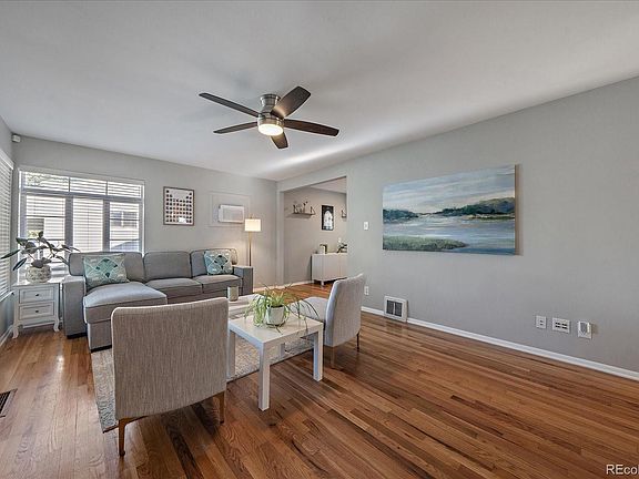 Located in Virginia Village this 4 bedroom ranch home offers easy access to all that Denver has to offer, with nearby amenities including coffee shops, restaurants, bars, retail, entertainment, light rail and more. Upon entering you are greeted by a spacious living room with tons of natural light and hardwood floors throughout the main floor. The living room opens to the kitchen which offers stylish grey cabinetry, stainless steel appliances, butcher block countertops, and a dining area. 2 bedrooms with a new ductless mini-split air conditioner system and a remodeled bathroom complete the main floor. The full basement features 2 additional bedrooms, bathroom, laundry room, tons of storage and options for a craft room, den, workout space and/or workshop. Outside, there are several areas to relax, including a covered front porch with swing and multiple patios in the private fully fenced and landscaped backyard.