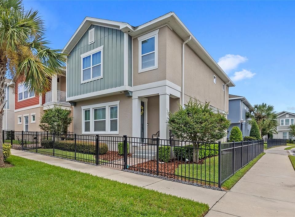 Come and explore this beautifully upgraded corner-lot home in the gated community of Reagan Pointe! Built in 2018 by David Weekley Homes, this charming bungalow-style property offers 3 bedrooms, 2.5 bathrooms, 1,675 square feet, and a rear-entry 2-car garage. The fenced front garden area provides a welcoming space to relax outdoors, while inside, you’ll find thoughtful upgrades throughout. The first floor boasts low-maintenance tile flooring, a spacious living area, and a gourmet kitchen featuring upgraded light gray cabinetry with crown molding, quartz countertops, a shimmering backsplash, contemporary range hood, and a GE appliance package. The dining area is perfectly situated for everyday meals or entertaining. Upstairs, you’re greeted with a cozy loft leading you into the oversized primary suite which includes a decorative tray ceiling, walk-in closet, and a flexible sitting area ideal for a home office or reading nook. The en-suite bathroom offers dual sinks, quartz counters, and shower. Two additional bedrooms share a beautifully appointed full bathroom with a shower/tub combo and an elevated design that complements the kitchen. The laundry room, complete with extra cabinetry, is conveniently located upstairs near the bedrooms. As an end-unit home, this property enjoys an abundance of natural light from extra windows. Community amenities include a pool and playground, and you’ll love being just 5 minutes to Publix, 7 minutes to Sanford International Airport, 15 minutes to historic Downtown Sanford and a short ride away to I-4 for easy commuting whether you’re looking to escape to the beach or the theme parks.