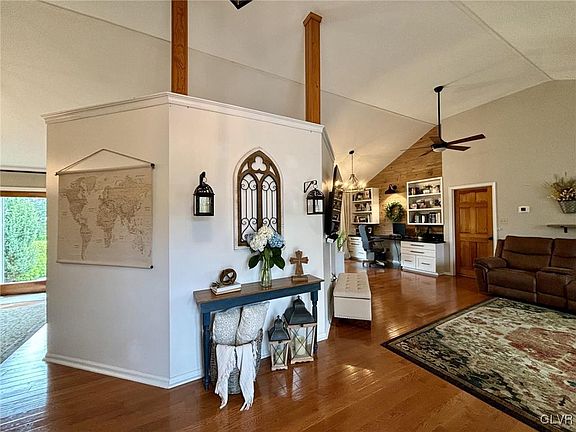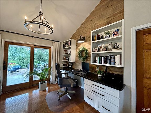 *LOWER NAZARETH TOWNSHIP* Discover this highly sought-after 3-bedroom, 3-full bath custom *RANCH*, uniquely designed with Florida-inspired architecture, located in the *NAZARETH AREA SCHOOL DISTRICT*. Step into a beautifully designed kitchen with charming brick tiles, complemented by newer 2023 stainless steel appliances. Enjoy the warmth of hardwood floors throughout and the comfort of a brand-new 2024 Bosch HVAC system, complete with high-quality air filtration, a humidifier, and a whole-house fan for optimal climate control. This home features custom built-in desk cabinetry and a full basement with finished 4th bedroom offering ample storage and expansion possibilities. The private backyard is a true outdoor oasis, featuring a covered patio perfect for relaxation or entertaining. This home has stayed within the same family and has been meticulously maintained, seamlessly blending modern amenities with unique architectural charm. The neighborhood offers a private path to the Lower Nazareth Township Park featuring a playground, gaga-ball pit, and walking path—schedule your private showing today!