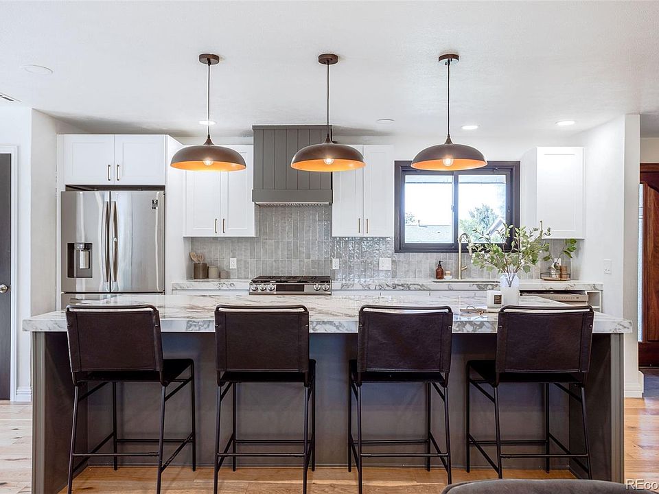 Fantastic ranch home and location! The home has been fully remodeled from head to toe to increase the functionality and aesthetics. This home has open concept living with engineered hardwoods throughout the main floor, a beautiful brand-new eat-in kitchen and a statement fireplace! The kitchen includes all new cabinets, countertops, a smart fridge, a self-cleaning convection oven with an air fryer, a pantry and more! Head down the hall and you will find your beautiful master ensuite that has been fully updated. The basement is accessible from the main level as well as the exterior. The multiple access points and the eat-in wet bar provides potential for an in-law suite, Airbnb or simply keep it as a killer entertaining and hang out space. Take advantage of the large backyard with a covered patio for entertaining and grilling. There’s a brand-new basement with a large secondary living room that has been added to suit your needs! Laundry room with ample storage ready for you to put your own spin on it. Take advantage of the large backyard for entertaining and grilling. The double driveway with the attached allows for 2 cars. Location is key as it is close to Santa Fe, 285, shopping, restaurants, and coffee shops! 10 Minutes to Historic Downtown Littleton and 18 Minutes to Denver. This house is a MUST SEE!! Come take a tour to appreciate all of the features this fantastic home has to offer!! Showings Start Friday at noon!!