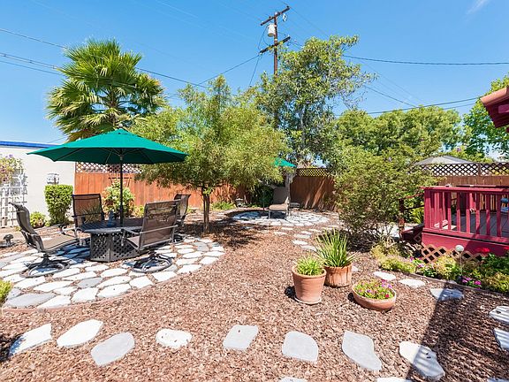 Must see El Cerrito Spanish charmer! Tastefully updated while maintaining original charm with hardwood floors, coved ceilings. Welcoming living room with plantation shutters and fireplace leads to dedicated dining space. Updated kitchen is off the dining room and has plentiful storage space, dishwasher, gas range, oversized refrigerator and built in microwave. There are two bedrooms that share a hallway bathroom. The main bedroom has French doors to the backyard, two closets, and a large en suite bathroom. The backyard has a covered patio, grass, fruit trees, and large storage shed. Driveway parking for 3 cars! Lovely quiet residential neighborhood in central location. More photos coming soon! One small pet considered. Available October 7
