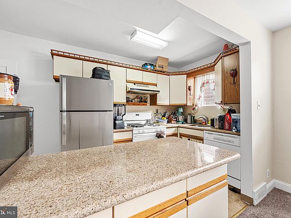 Attached garageStreet parkingDriveway parking spotFenced-in front yardNewer carpetKitchen featuring granite countertops