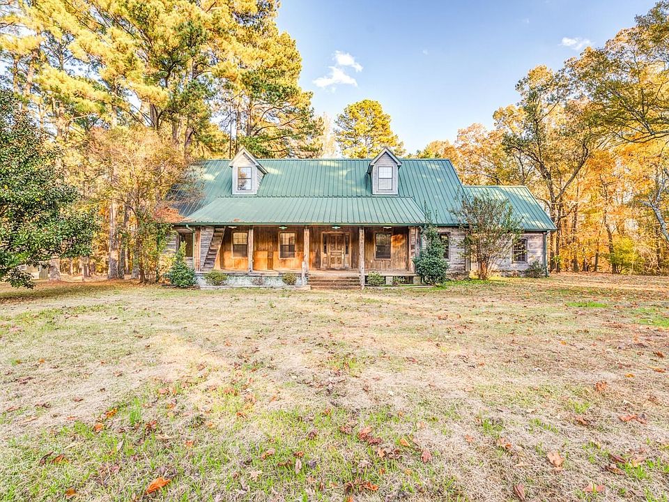 Custom built ranch style home with metal roof on 5.82 acres +- This is not a log cabin. Rustic built out of heart pine wood. Approx. 2,221 sq ft of living space with open concept. The unique 1.1 story home offers privacy, space and potential. The home sits back off the road through a driveway lined with beautiful pine trees. Large workshop with concrete floor once used as a sawmill to harvest the rare heart pine wood. This land was once used to stable horses. So horses are welcome. This is two parcels. 4624 was demolished. Price reflects needed updates. Conventional loan or cash. Open Sunday Nov. 23 from 2-4.