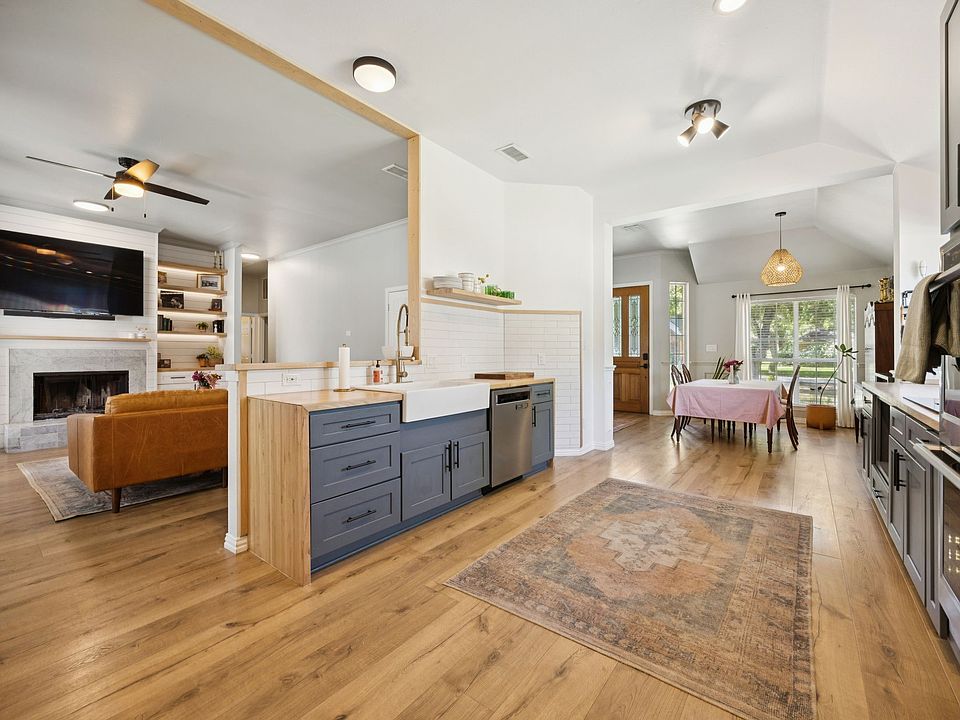 Cozy fireplacePrivate backyardFormal dining roomFour bedroomsLight oak lvp floorsCovered patioCorner lot