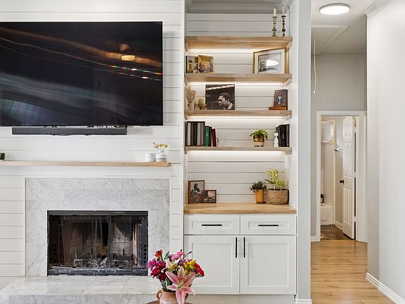 Welcome to this charming one-story home nestled on a generous corner lot in the highly desired Pecan Acres neighborhood of Flower Mound. This residence offers both comfort and convenience in a great location within the Lewisville ISD. Inside, discover a well-designed floorplan featuring a formal dining room, spacious living room with built-ins and a cozy fireplace, and a well-appointed eat-in kitchen with island and walk-in pantry. The home has been fully renovated with new cabinetry and butcher block counters in the kitchen and light oak LVP floors throughout the living spaces.  It features four bedrooms including a split-plan primary suite with dual vanities, separate shower and tub, and a walk-in closet, plus two full baths. A versatile fourth bedroom makes a perfect home office or guest retreat. Outside, enjoy the covered patio and private backyard consisting of turf, ideal for low maintenance and a peaceful escape ideal for relaxation or entertaining. Located just minutes from major highways, shopping, dining, and excellent schools, this home blends neighborhood charm with modern convenience.