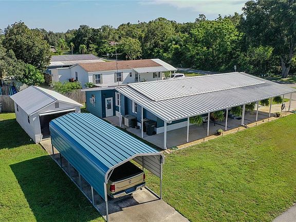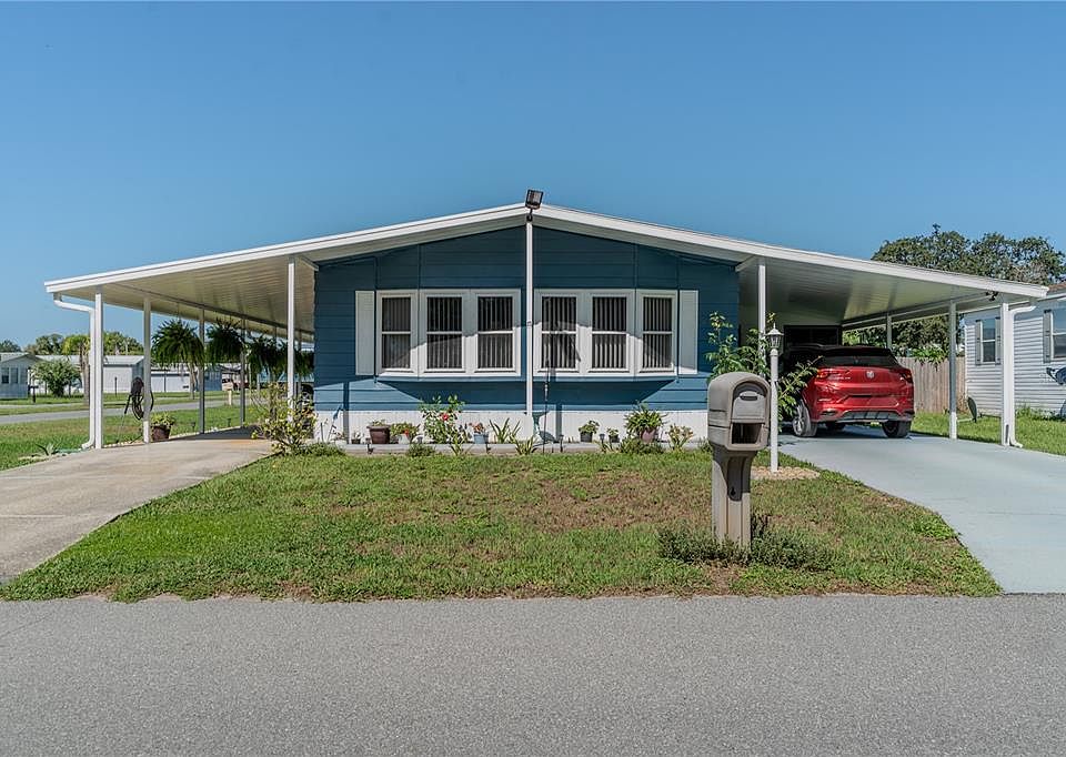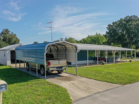 Welcome to your dream home in the coveted Caloosa Lake Village! This three-bedroom, two-bath residence is perfectly situated on an oversized corner lot, offering ample space and privacy. As you approach, you'll be greeted by a charming façade featuring new paint and huge double bay windows that flood the interior with natural light. Step inside to find an inviting open-concept layout adorned with laminate flooring throughout. The heart of this home boasts a built-in breakfast bar, perfect for casual dining, while the spacious dining room showcases elegant built-in cabinets for your storage needs. Enjoy the luxury of high vaulted ceilings that enhance the sense of space and airiness. The primary bedroom is a true retreat, featuring an en suite bathroom complete with a generously sized walk-in closet and a newly upgraded walk-in shower. An impressive massive utility room/workshop is conveniently attached to the home, providing plenty of room for a freezer, washer and dryer, extra refrigerator, and a work bench for all your DIY projects. With a single car garage, a large 25 x 10 carport, and three separate driveways, you'll have plenty of room for guests and vehicles. Relax and entertain on the large covered porches on both sides of the home, making it ideal for gatherings or quiet evenings enjoying the serene surroundings. This is more than just a home; it's a lifestyle waiting to be embraced. Don't miss out on the best lot in Caloosa Lake Village!