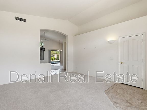No Application Fees! Beautiful 2 bedroom plus Den, 2 bathroom single-level Cave Creek home with no neighbor to the rear and open view fencing for added privacy and scenic desert surroundings. This open floor plan home features vaulted ceilings, neutral paint throughout, upgraded fixtures, ceiling fans in each room, and spacious living areas including a front living room and separate large family room. The open kitchen offers Corian countertops, a dining area, and all major appliances. The large primary suite includes vaulted ceilings, a walk-in closet, dual sink vanity, garden tub, and separate step-in shower. Washing machine and dryer are included, and the two-car garage provides ample parking and storage. The front and backyard feature easy-to-maintain desert landscaping, with the rear yard offering peaceful views and a quiet outdoor setting ideal for relaxing or entertaining.