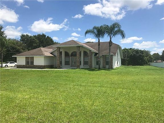 Beautiful well maintained 3 bedroom/2 bath plus den 1 story home nestled on an acre of land. Comes with a 2 car side entry garage, huge covered screened lanai with pool, cathedral ceilings with multiple built in skylights in family room & kitchen. 20 x 15 master bedroom with coffer ceiling, bay window & walk in closet with door leading out to lanai/pool area. Master bathroom has separate tub & shower & dual sinks. Other features include double glass front entry doors opening up to a huge inside foyer with custom built columns with open views to the screened lanai & pool & much more. Being sold as is with the right to inspect.