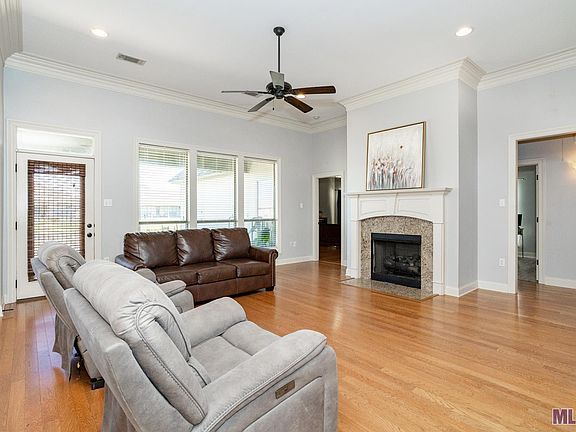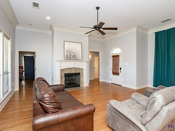 Beautiful 3 BR 2 BA waterfront home with an open, split, floor plan. Kitchen features granite counter tops, island with a breakfast bar, pantry, wall of windows overlooking the patio and pond. Flooring--ceramic tile, wood and laminate. Master bath features garden, soaking, jetted tub, separate shower, double vanities with a framed mirror and water closet. Hall bath features tub/shower combo. Living room features gas, vent less, fireplace, wood flooring and another wall of windows bringing in natural lighting with beautiful views of the backyard and pond. Backyard features covered and open patio perfect for relaxing or entertaining. 2-car attached, covered, garage. Brusly School District. Convenient to local restaurants, retail and commercial businesses. This home is located in the 2nd filing in Sugar Mill Plantation and has lighted fountains in the evenings. Call for your private showing today. This home is a must see.