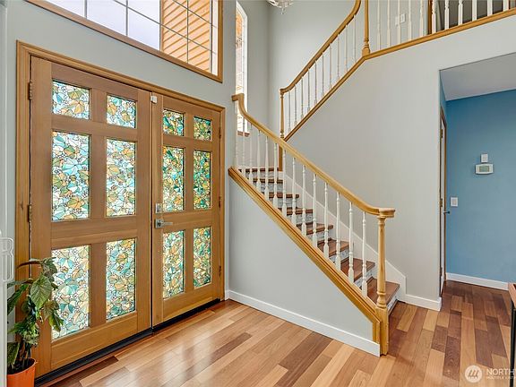 Experience luxury living with breathtaking views of the Cascade Mountains and Snohomish Valley in this stunning 2-story home with a finished basement. Perfect for entertaining, the turf backyard features a putting green, koi pond with waterfall, and lush gardens. A dramatic accordion door opens to a composite deck with motorized awning—ideal for indoor-outdoor gatherings. Main Level Features Bold Hardwood Floors leading to the chef’s kitchen boasting slab granite counters, full-height tile backsplash, and stainless appliances. Ideal spacious basement offers potential as a separate living unit or create the bonus room of your dreams! Retreat to a view-filled primary suite with a spa-like 5-piece bath and a custom-designed walk-in closet.
