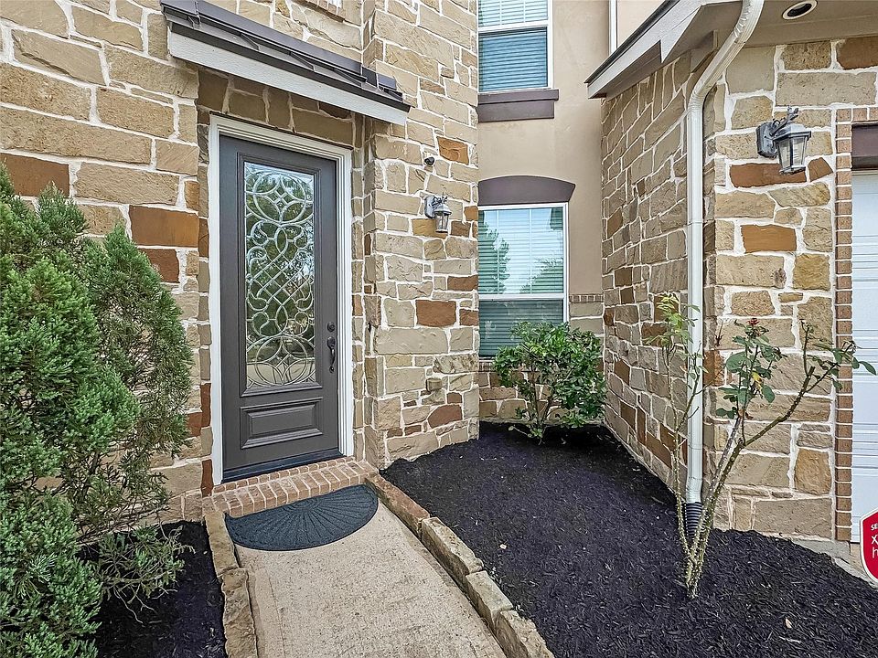 Former model home in Riverstone offering 3,820 sq. ft., 5 bedrooms, and 4 full baths. High ceilings, 9-ft. doors, and walls of windows create a light-filled, open layout. The chef’s kitchen features granite countertops, stainless steel appliances, a gas cooktop, and a large island open to the family room with a fireplace. Spacious primary suite includes a luxurious bath with dual vanities, a soaking tub, an oversized shower, and a huge walk-in closet with hidden storage. A second bedroom downstairs is perfect for guests or multigenerational living. Upstairs offers 3 bedrooms with walk-in closets, a large game room, and a private media room. The backyard retreat features a covered patio and a full outdoor kitchen, ideal for entertaining. Riverstone is one of Sugar Land’s premier master-planned communities with resort-style pools, fitness, trails, lakes, and top-rated schools. Gameroom - all furniture stays. Media Room - Everything stays including Projector.