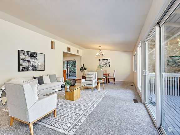 Discover peaceful living with the convenience of urban amenities in this spacious daylight rambler. Perfectly situated on .81 acres of tranquil grounds, it's just a short stroll to award-winning Blakely Elementary, Pleasant Beach Village, and Islandwood. This light-filled home offers the ideal blend of privacy and accessibility. The main level features a sunlit living room with vaulted ceilings, an eat-in kitchen, a primary suite, and two additional bedrooms for easy single-floor living. The lower level provides a versatile space with a large recreation area, a dedicated office/den, laundry, bath, and extra space for hobbies. The fenced backyard, chicken coop, and 2-car garage complete the package. Welcome home!