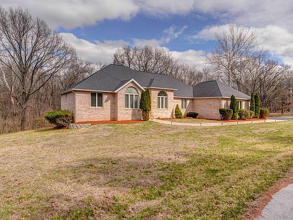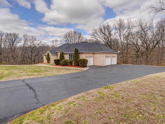 This all brick, custom built beauty sits on 3.4 partially wooded acres, just minutes east of Hwy 65 and Battlefield Rd. You can have the convenience of the city with the enjoyment of the country. Upon entry, the home welcomes you into a spacious living area that opens to the formal dining, the casual dining and kitchen. High ceilings, gas log FP and full length Pella windows highlight this space. Split bedroom floorplan. The large primary suite hosts a nice bath with walk-in shower, jetted tub, and a nice walk-in closet. Bedrooms 2 & 3 have walk-in closets, individual vanities and a Jack and Jill bath. The office is light and bright with vaulted ceiling. Half bath and laundry finish the main floor. Lower floor also has high celings, a huge family room with woodburning FP, full kitchen and dining area. Large bedroom with walk-in closet and private opening to the full bath. Over 1400 sq feet unfinished space, just waiting for you, and a John Deere room, finish the lower floor. Home would be ideal for multigenerational living.