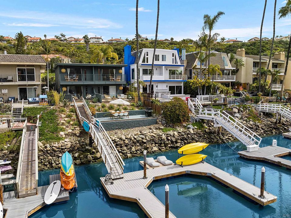 Beautifully renovated Mid-Century 4-plex on Carlsbad’s peaceful waterfront with rare private boat dock. Each unit features direct water views and private outdoor space, just steps from the lagoon beach and minutes to Carlsbad Village. Fully furnished and turnkey, with stylish interiors including custom teak cabinetry, quartz counters, Italian porcelain tile, and high-end appliances. Features include reinforced balconies, IPE wood decks, modern finishes, and drought-tolerant landscaping. One unit has a private gated entry—ideal for owner-user. Zoned for 30+ day rentals with potential to add two units over the garage.