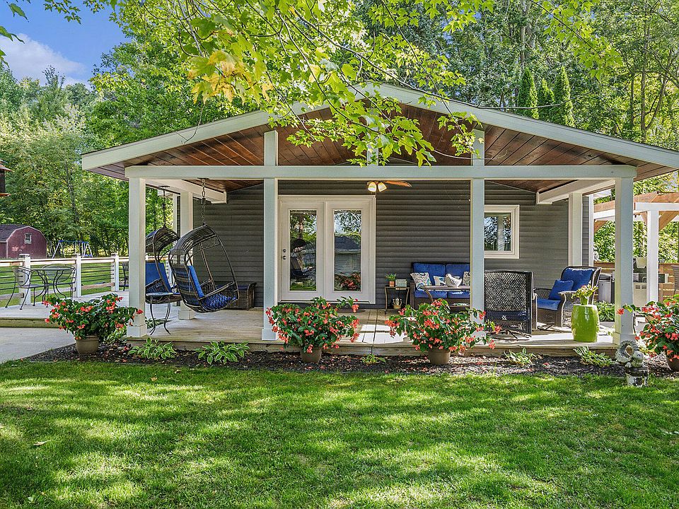 Totally renovated bungalow on private 1/2 acre lot offers all the benefits of living on South Scott Lake without the expense! Seconds from the association amenities which includes picnic area, bathrooms, playground and lakefront sandy beach. Only $75/year! With 17 properties, it's like having your own beach! Front porch boasts views of the lake and glass doors that welcome you into this beautiful open concept home. Kitchen with adorable coffee bar and large center island opens to comfortable living space with fireplace. Primary bedroom offers 2 walk-in closets. Renovated bath includes stackable washer/dryer. 2nd bedroom serves as a den. Outdoor space is amazing! Side deck, side patio with pergola, basketball court, and firepit. Shed, lean to and tent offers room for extra storage! Nestled between North and South Scott Lake with road frontage on both Leedy Point and Broadway, the possibilities for expansion are endless! Perfect for year round or part time. Plan your escape today!