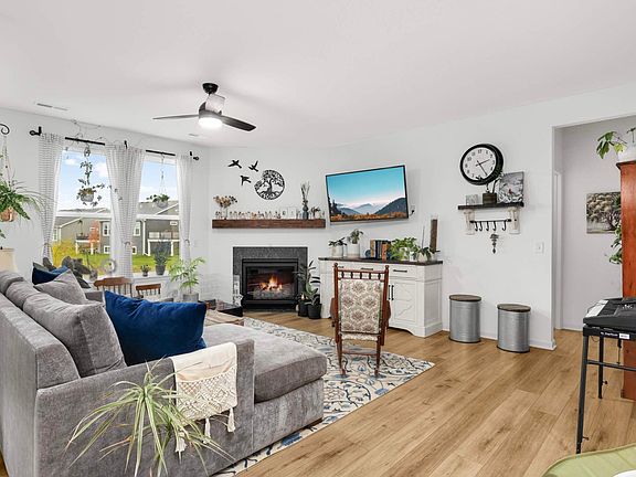 The inviting living room features a cozy gas fireplace and large windows that flood the home with natural light, creating a warm and welcoming atmosphere. The flexible main level space can be adapted to suit your needs, whether as an office, playroom, or guest area.