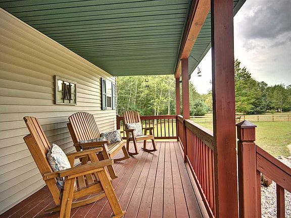 THIS GORGEOUS HOME HAS IT ALL! Located on 10 PEACEFUL acres set back off the road, this immaculate, pre-inspected 4 bedroom (option for 5) home is still conveniently close to town and centrally located between Midland, Mt. Pleasant, and Shepherd. New stamped concrete steps and a large porch welcome you outside. Inside, you will fall in love with the beautiful hickory kitchen with center island and the stunning 30 foot stone fireplace in the living room that climbs to the vaulted pine tongue in groove ceiling. An open floor plan provides ample light and beautiful views of the woods on all sides, and the master bath with spacious tiled shower is a calming oasis. This recently remodeled basement is a MUST SEE with its 'ole time western Onion Creek Saloon (yes, really, there is a mock saloon in the basement!!), comfy living area, bright exercise room, and bonus workspace. The owners spared no expense with recent updates that include NEW A/C (in progress), fresh paint inside and out, remodeled upstairs bath, metal roof over the top of the extended double-level deck, stamped concrete patios leading to an ADDITIONAL deck overlooking Onion Creek, and a fenced area for horses or livestock. Oh, and there's a bonus detached garage for additional storage! Make this secluded retreat your new home with perfect entertainment space today! (All measurements are approximate.)