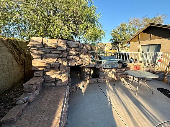 This home sits on an oversized CORNER LOT with tons of CURB APPEAL!! SPARKLING CLEAN diving pool is a HUGE PLUS along with a built-in BBQ/Fireplace area, RV GATE, sport court, and NICE YARD SPACE. Inside, you will find VAULTED CEILINGS in all the primary living spaces, beehive fireplace and a large kitchen with island. The split floor plan currently functions as 4 bedrooms (front bedroom doesn't have a closet), 2 full baths and includes an enclosed Arizona Room. A/C approx 15 years old. Roof was not replaced within last 10 years. Tenants will be out this week. Sold ''AS IS''.