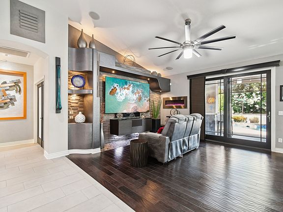 Sparkling poolExtended covered patioEpoxy flooringCustom entertainment centerMoody upscale finishesPremium finishesWired for outdoor tvs