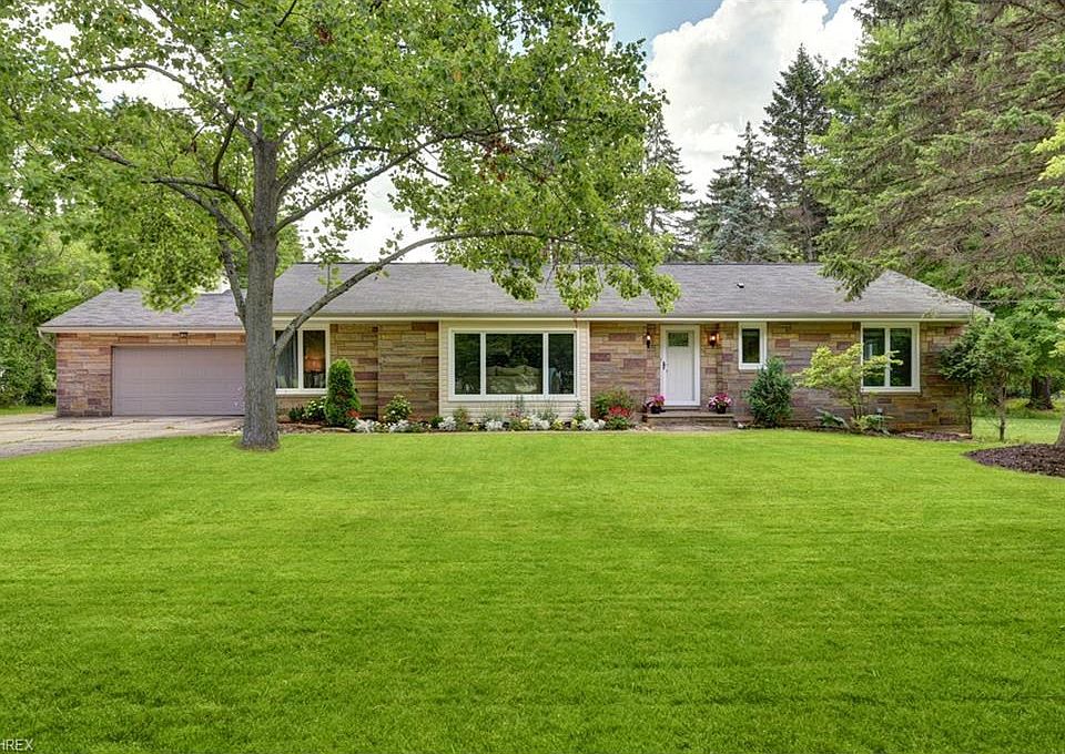 Nestled within scenic Orange Village, roughly 20 miles east of downtown Cleveland, this stylish ranch is set back from Lander Road. Tall pines border the property with a pond full of white lotus and water lilies, combining a Monet tranquility with modern chic. The three bedroom and two bath home, with cove crown molding, has been renovated including newer windows with custom shades, flooring, granite countertops, a gas stove, a dishwasher, first floor laundry and other modern amenities. Additional warmth, for the colder months, includes a wood burning fireplace in formal living area and an additional fireplace in open designed kitchen. Relaxing evenings on the sizeable screened-in veranda with tile floors, chandelier and ceiling fan, offers a view of the picturesque backyard. There's an additional outbuilding with a second-level living quarters, which needs your vision for restoration. Full basement waterproofed August 2017 with transferable warranty to new owner. The home is delivered with a POS clearance (city and county).