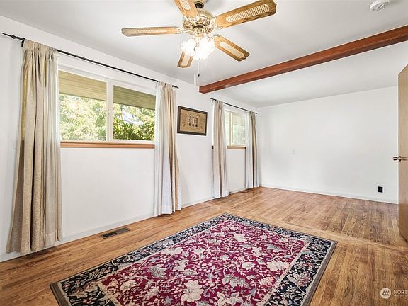Main level has all original hardwoods, generous closets in every room including the Entry. Large living area will hold even the largest of sofas and there's great flow with a circular floor plan from Living, Dining, and Kitchen. Deck provides beautiful southern exposure and views into the large fully fenced backyard. Main level features the Primary and second bedroom with both having access to the full bath.