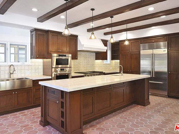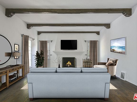 Elegant 1927 Spanish home updated with meticulous attention to detail. The gracious 2 story entry opens to a cozy den/office, the large living room with Bay window, beamed ceilings and grand scale fireplace, and the formal dining room with French doors opening to the entertaining terrace. The gourmet kitchen has been remodeled preserving the sensibilities of the home's era while upgrading its amenities. It has Wolfe and Sub Zero appliances, leathered granite counters, 3 sinks, a bar seating area and French doors opening to the trellised entertaining patio overlooking the verdant yard. One bedroom suite downstairs. Upstairs there are 3 bedrooms and 2 baths. The gracious master suite is complemented by a fire place, a large walk in closet, and a sumptuous bath with Onyx stone detail, dual sinks, and a tub with a view of the garden. The separate guest unit opens to the converted garage, perfect for a sitting room or play space. A truly romantic home in a prime Santa Monica location.