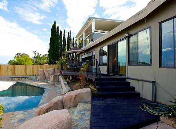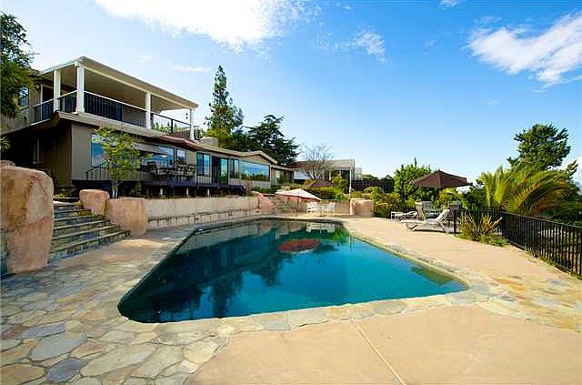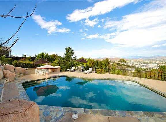 Breathtaking panoramic views and seamless indoor/outdoor living provide the perfect template for the relaxing Southern California lifestyle that you have been looking for. From the moment you walk in the front door and look through the picture windows- at the pool and view beyond- you know that this is a special home.Enter this home through modern double doors and immediately you will see the spacious family room and living room that showcase the outdoor views. The master bedroom on the second level is truly a retreat that features his/hers walk-in closet and a modern bathroom with rock shower. The highlight of the master bedroom is a private, finished 300 square foot covered and finished patio with recessed lighting that is the best vantage point for views. The indoor/outdoor living is the best part of the home and outside you will find a pebble-tech pool with rock formations that looks over the valley below. There is also an ample lawn in back for games and entertaining. Back in the home, the remaining three bedrooms are large and also capture some views. There is a brand new central HVAC system for the few hot weeks that you need it.