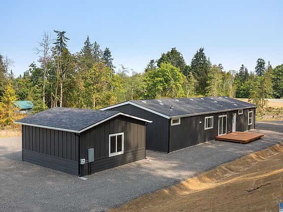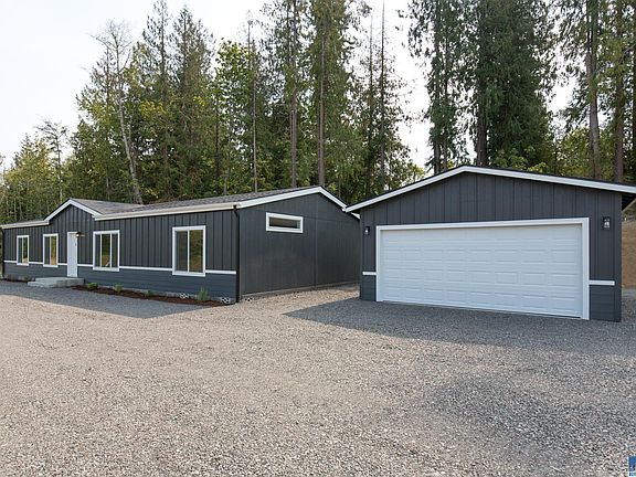 PNW living on 3.3 acres! This brand new 3-bedroom, 2-bath plus bonus room home was made for easy living with quality finishes throughout—shaker cabinets, vinyl plank flooring, and large windows that fill the space with light. Enjoy open-concept living from the kitchen to the living area and out to the south-facing deck, perfect for year-round sunshine. The primary bedroom features a walk-in closet and private bath, while the bonus room adds options for an office, playroom, or guests. The detached garage allows for parking, storage, or projects, and the lot is a blank canvas ready for a garden or whatever your vision is. Completely move in ready with a one-year limited warranty from the manufacturer, come see this home and make it yours!