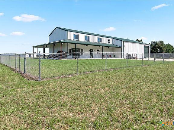 Welcome to your dream retreat! This stunning custom-built barndominium sits on 20 picturesque acres, offering the perfect blend of rustic elegance and modern comfort. Just 2 miles from the city limits, enjoy peaceful country living with quick access to town amenities. Inside, you’ll find 5 spacious bedrooms and 3.5 baths designed for comfort and style. The open-concept living area features a cozy wood-burning stove and plenty of natural light—perfect for family gatherings or quiet evenings. The gourmet kitchen impresses with a custom trough island crafted from 100-year-old barn wood, complemented by modern appliances and ample counter space for every culinary need. The luxurious primary suite offers dual sinks, double shower heads, and body sprays for a true spa-like escape. Step outside to a 10-foot wrap-around porch overlooking rolling pastures, mature trees, and open fields. The property also includes a large attached shop and garage with an upstairs loft—ideal for storage, projects, or hobbies. Fully fenced and cross-fenced with a peaceful pond, this one-of-a-kind property combines timeless country charm with thoughtful craftsmanship and modern convenience.
