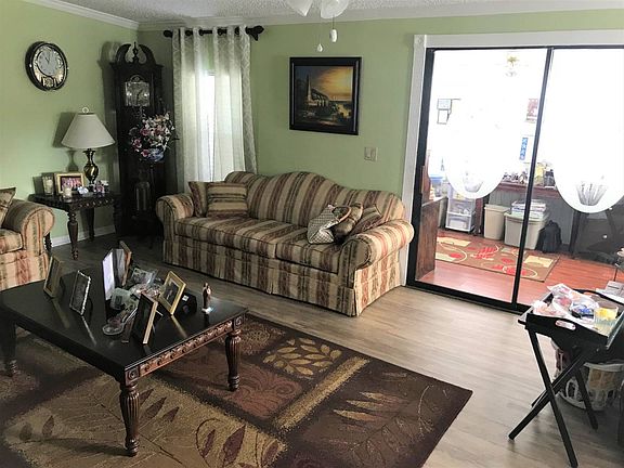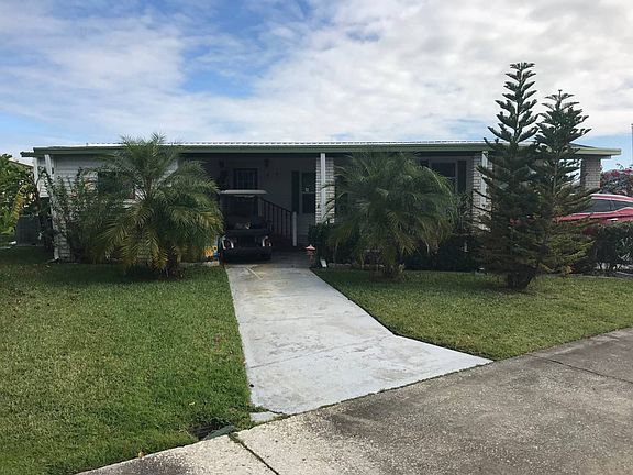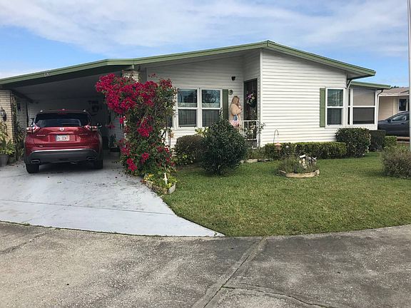 Home is located in a 55+, golfing community with amenities such as, pool, tennis, with great clubhouse and plenty of activities to keep you busy. Lot rent is $528.00 per month which includes all park amenities, water, sewer, and trash. Close to shopping and restaurants. This home is beautiful and full upgraded. Golf cart is included and has its own driveway and garage!!!! Also, regular carport for your vehicle and lovely landscaping all around. Washer/dryer is included and located in golf cart garage. New metal roof, A/C only 8 years old and works great! New double pane windows with tilt outs, crown molding throughout with upgraded interior doors and trim. Interior has been totally upgraded with laminate flooring throughout, kitchen has new stainless steel appliances and new cabinets. Large entertainment center and computer desk stays with home. Master suite is large, with room enough to fit a king size bed along with a huge walk in closet. Ensuite bathroom has a tile walk in shower, double vanity and sinks, with tile flooring. Second bedroom has wall to wall closet with plenty of room for a queen size bedroom set. Guest bathroom has a tile shower and tile floor. All weather room is great size for office or extra bedroom. This is a must see!! Won't last long with all these great features. Call to make an appointment.