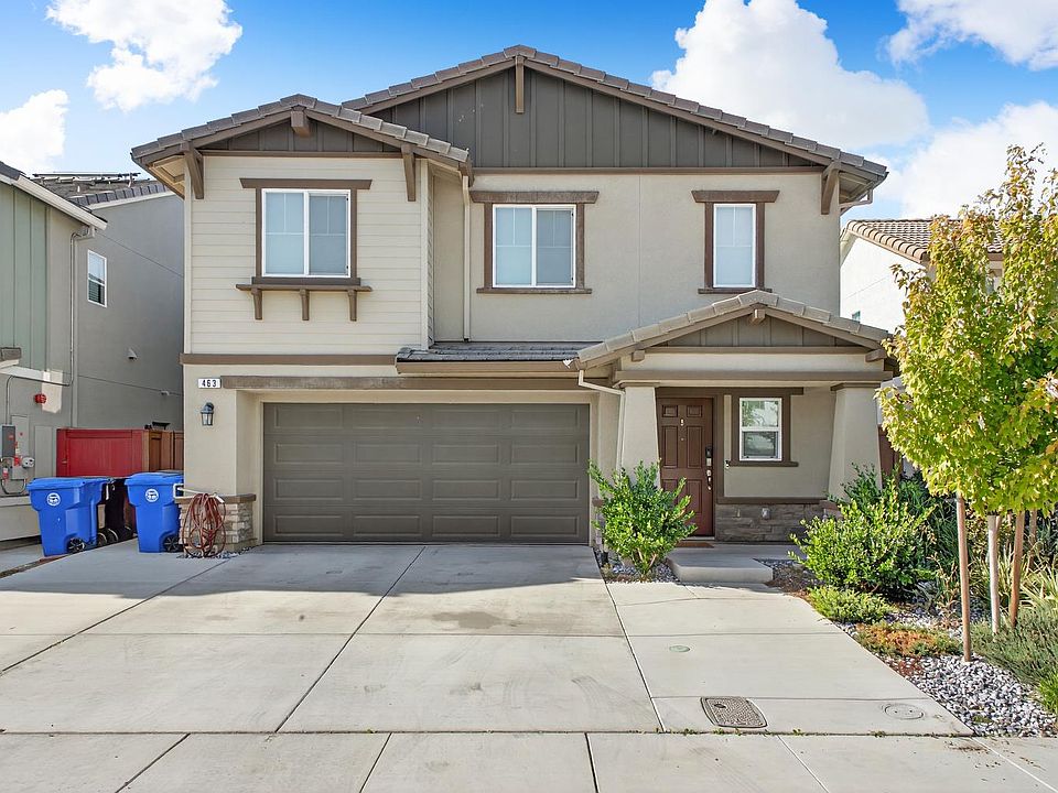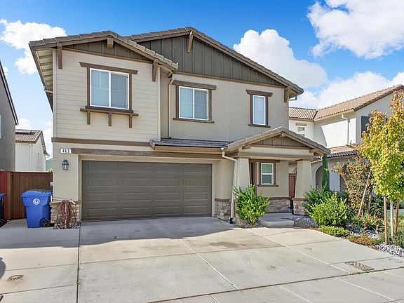 Welcome to Yosemite Greens! This beautifully upgraded home features an open kitchen with white cabinetry, black hardware, and timeless finishes flowing seamlessly into the family and dining areas. The loft is already framed as a true flex space that is perfect for a 4th bedroom, office, or guest suite. Upstairs also offers a spacious primary suite, two guest rooms, and a convenient laundry room. Enjoy low-maintenance living with modern pavers, artificial turf, and a sealed fence. Additional upgrades include owned solar, a whole-house water purification system, epoxy-finished garage, whole-house fan, and energy-efficient electric appliances designed for comfort and long-term savings.
