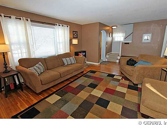 Stunning Home on a beautiful neighborhood street.Old world charm with archways & beautiful hardwood flooring.Features Vinyl siding, High eff. furnace & Knotty Pine finished basement with half bath.Updates include:New Electrical service including riser cable & meter moved outside 2014, New hot water tank 2014,Updated kitchen with stainless stove/microwave,tiled backsplash & ceramic tiled floor,2013,Mostly New replacement vinyl windows,New light fixtures in dining room,kitchen and bathroom 2013,New door hardware on bedrooms 2012,Freshly painted three seasons room 2015,sealed driveway in 2014.