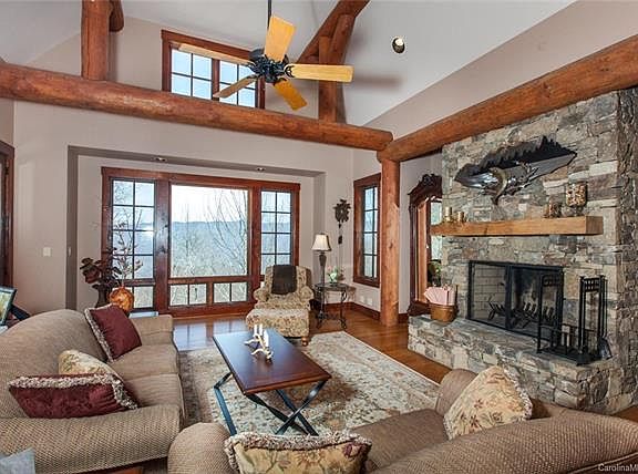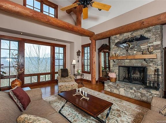 Beautiful post and beam home at Balsam Mountain Preserve! This home features fantastic mountain views of the Plott Balsam Mountain Range and the Arnold Palmer Signature Golf Course. Great outdoor porch and stacked stone fireplace to enjoy the views and nearby creek sounds. An open floor plan on the main level that leads to two outdoor decks is ideal for entertaining. Both indoor and outdoor fireplaces. Great views from the bedroom and soaking tub on the main level. Charming downstairs living area features rustic concrete floors and a walkout terrace to plenty of yard space to enjoy! Two large bedrooms downstairs with gorgeous mountain views. Nestled just above 4000' of elevation, this custom home is secluded, yet just a few minutes from most amenities and new Clubhouse. This home has three bedrooms, but septic for 2 bedrooms. Recently reduced!