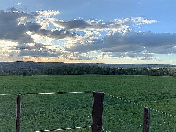 Hill Top Paradise with Spectacular View New on the market! 2 bedrooms, 3 bath one of a kind property. After driving up the winding half mile driveway you will be greeted by this completely private and secluded home. This home was built by it’s only owner in 2003 with lumber harvested from the land it sits on. The craftsmanship and attention to detail makes this house truly unique. Open concept kitchen, dining and living room with hardwood beams throughout the house. The wood boiler system, LP gas fireplace, and Mitsubishi heat pump provide heating and cooling options. Includes in-flooring radiant heating in the stunning hardwood, tile and stone flooring. Stone floor foyer and heated attached one car garage. First floor primary bedroom with ensuite, spacious walk-in closet and access to walk around deck from french doors. A spiral staircase takes you to the second floor loft area perfect for relaxing and reading with an unmatched view. Upstairs bedroom has built in dressers, large closet and private bath. Full concrete poured basement has baseboard heating and is plumbed for a bathroom. With three large outbuildings there is plenty of storage for vehicles and equipment. The property has full electrical service provided by NYSE&G, in addition to the off-the-grid power from solar panels, two wind turbines and a generator. This gives you the freedom to be self-sufficient and have total peace of mind during any power outage. This property is situated on 75 acres of mostly wooded property with trails and established hunting blinds. For a change in scenery from the gorgeous views from the house, just head up the back trail to your very own 1/4 acre stocked pond and newly built 24'x24' cabin where you can truly "get away from it all" without ever leaving home. The covered porch, two bedroom, bathroom, kitchen, sitting and loft area is also perfect for inviting friends and family for a one of a kind experience. Cabin is set up for water, electric and septic. This extraordinary home will not last long on the market. We are interested in pre-approved and cash buyers. Thank you for looking.