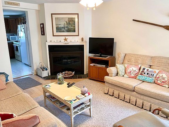 Hear the murmur of the waves and tides as you sit on your deck enjoying the cool breezes and sweeping views of the Atlantic! This meticulously maintained Seabreeze condominium offers one floor living with features that include a primary bedroom with sliders to deck, generous sized living room with fireplace and sliders to deck, additional bedroom, eat-in kitchen, laundry area and full bath. The unit has an intercom system, security entrance and front and rear exits. Large parking lot with two parking spaces along with two guest spaces. Pets are allowed with approval. 2 week minimum for rentals. Fantastic location for easy in and out, yet minutes to all conveniences and just steps to the beach. Great turn-key year round home or vacation getaway! Agent is related to the seller.