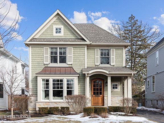 Custom built by Orren Pickell, this unassuming house amazes inside! Winner of a Chicago homebuilders Association silver award for design, this home is both unique and stunning! From entry, you get a sense of the open floor plan, the exquisite millwork, and the variety of large windows create a unique beauty you don't see in many homes.The white Cook's kitchen is the heart of this home. Top-of-the-line cabinetry & appliances, unique combination of shelving, glass panel cabinets with lighting, Ann Sacks mini gray subway tile backsplash, double ovens, 2 sinks, freezer drawers, 6 burner range with grill & pot filler. Counter tops in timeless soapstone & island in walnut. Butler's pantry w/ walk-in pantry & wine fridge.Master has 2 large walk-in closet's, wainscoting, tray ceiling, private balcony, master bath w/ double sinks, soaking tub, oversized shower. Spacious mudroom w/ built-ins, 2nd-floor laundry, rec rm, fitness & craft rooms. Great location! Close to town, train & schools!