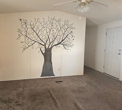 Good size, open living area. Three bedroom converted into a 2 bedroom. Buyer can be convert back if desired. Covered carport at back entry of home, covered patio at front entry. Fenced back yard with storage shed. Home does need some work but it is priced accordingly. Home is in a gated community with 2 club houses, an outdoor and an indoor pool.