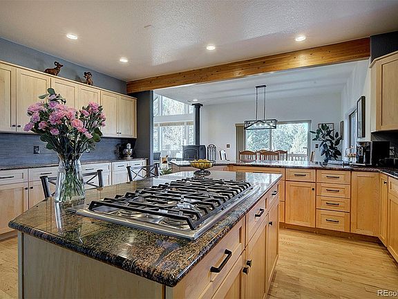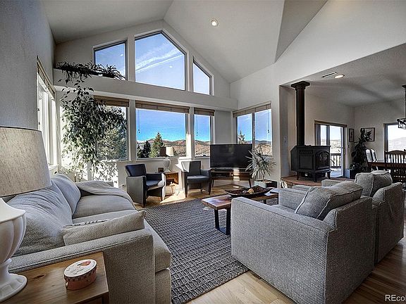 Perched at the perfect elevation to capture breathtaking alpine views, this stunning 4-bedroom, 4-bath residence masterfully balances mountain serenity with accessibility to all that Colorado has to offer. Step inside to discover custom upgrades throughout, including a gourmet kitchen with premium Sub-Zero and Viking appliances, solid maple cabinetry, a walk-in pantry, and all-new finishes and fixtures. Flooded with abundant natural light, the open-concept main floor is perfect for entertaining or relaxing with family and friends. Enjoy glorious sunsets from the wrap-around balcony or unwind in the 7-person built-in hot tub. The spacious Primary Suite features cathedral ceilings and a stunning 5-piece bath. Two more bedrooms and a loft complete the upper level. Downstairs features a cozy family room with a stone fireplace and walkout access, a game room, an additional bedroom (non-conforming), and a full bath. Three-bedroom septic system designed for six people. This home offers the perfect basecamp for year-round adventure, just minutes from the historic and charming towns of Evergreen and Idaho Springs and a scenic one-hour drive to world-class ski resorts. Only 35 minutes from Denver and an hour from DIA. Contact us today to schedule your private showing of this exceptional mountain property.
