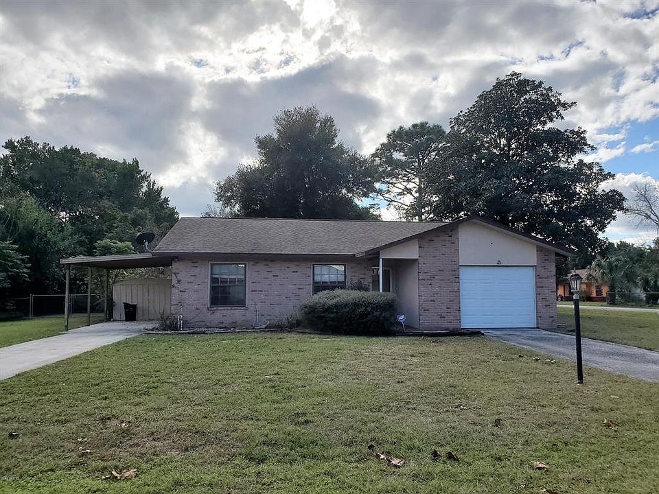 Cute home with chain link fenced backyard on a corner lot. Attached 1 car garage plus attached 1 car carport. Living room plus family room. Kitchen has tile countertops and all appliances included. Spacious master suite with large walk-in closet and updated bathroom with tiled walk-in shower. Florida room was converted to 2nd bedroom and is under central air with closets and built-ins but buyer could easily convert back to use as a Florida room if desired. Great starter home or investment opportunity. Square footage is large enough to allow the possibility that a portion of living space could be converted into additional bedrooms.