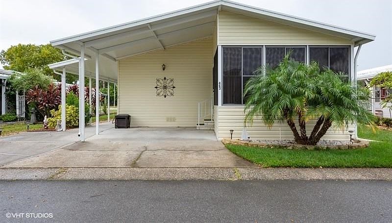 Beautiful 1998 Jacobsen built to the newer standards. Open floor plan. Spacious 3 bedrooms and two baths. Split bedroom plan. Casual dining area in kitchen. Inside laundry. Vinyl enclosed Florida room on front of unit. Beautiful furniture will convey with purchase. Good sized utility room with work bench. Gull-Aire Village is a 55+ community that offers active clubhouse, library, pool table, covered shuffleboard court, Bocce ball court, large heated pool and spa. HOA is $40.00 per month. Golf cart friendly. One pet- any size. You own your own land. Across the street from Gull-Aire are AMC Theatres, Beall's, Marshall's, Ulta, Earth Fare, Pet Smart and Dollar Store. Restaurants also across the street include Ruby Tuesday's, Green Market Café, My Greek Corner, Craft House, Shaker and Peel and Eve's Family Restaurant. Just minutes to Westfield Mall, Super Walmart, Publix and Countryside Hospital. Easy commute to Tampa International Airport. About 25 minutes to the beautiful beaches of Honeymoon Island and Caladesi State Parks. Room sizes are approximate and should be verified by Buyer.