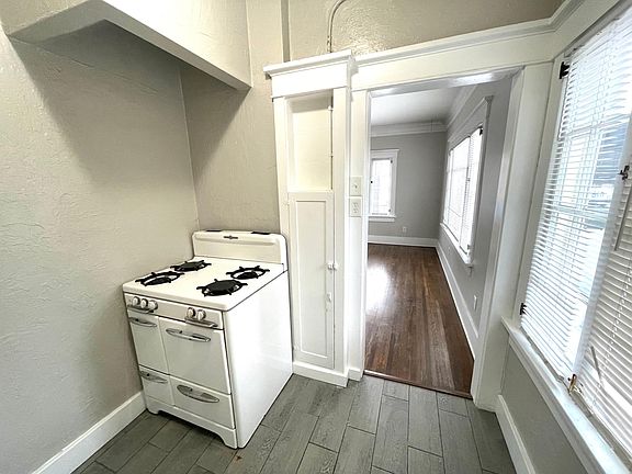 Tile floorsQuartz countertopsOriginal hardwood floorsGas stoveSubway tile shower
