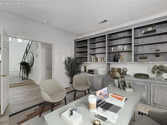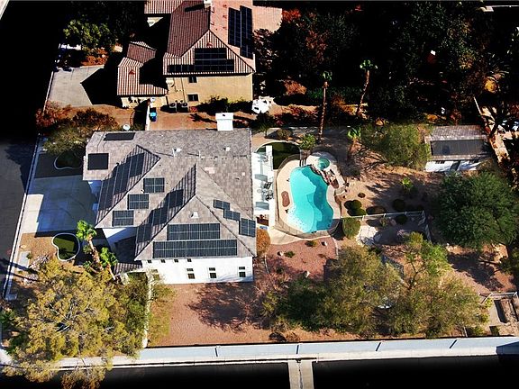 This stunning 4-bed home, plus loft, office, pool, & spa, separate workshop in a gated community on over half an acre offers luxurious living. The 1st floor features a grand foyer leading to a living room with vaulted 20-foot ceilings & spacious dining room. The great room boasts built-in shelves, fireplace, & access to the covered patio. The gourmet kitchen includes large island, built-in double ovens, stainless steel appliances, & trash compactor. An open office/den with custom built-ins, a bathroom with a walk-in tub, & a spacious laundry room with a utility sink complete the 1st floor. The 2nd floor features the primary bedroom with a retreat/sitting room & a full balcony, a walk-in closet, & an en-suite bath. A large loft, 2 secondary bedrooms sharing Jack & Jill bath, & an additional bathroom round out the upper level. The property also includes owned solar panels, a 3-car garage with EV charging & backup batteries, a separate building workshop, gazebo, & built-in BBQ